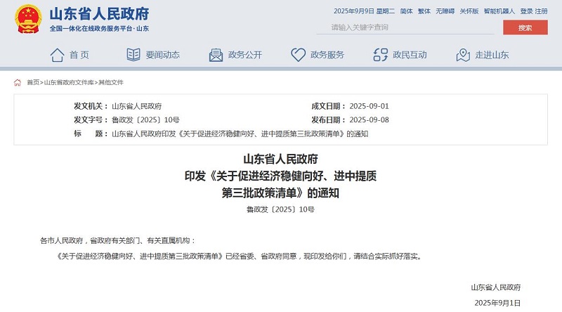 山东省人民政府印发《关于促进经济稳健向好、进中提质 第三批政策清单》的通知