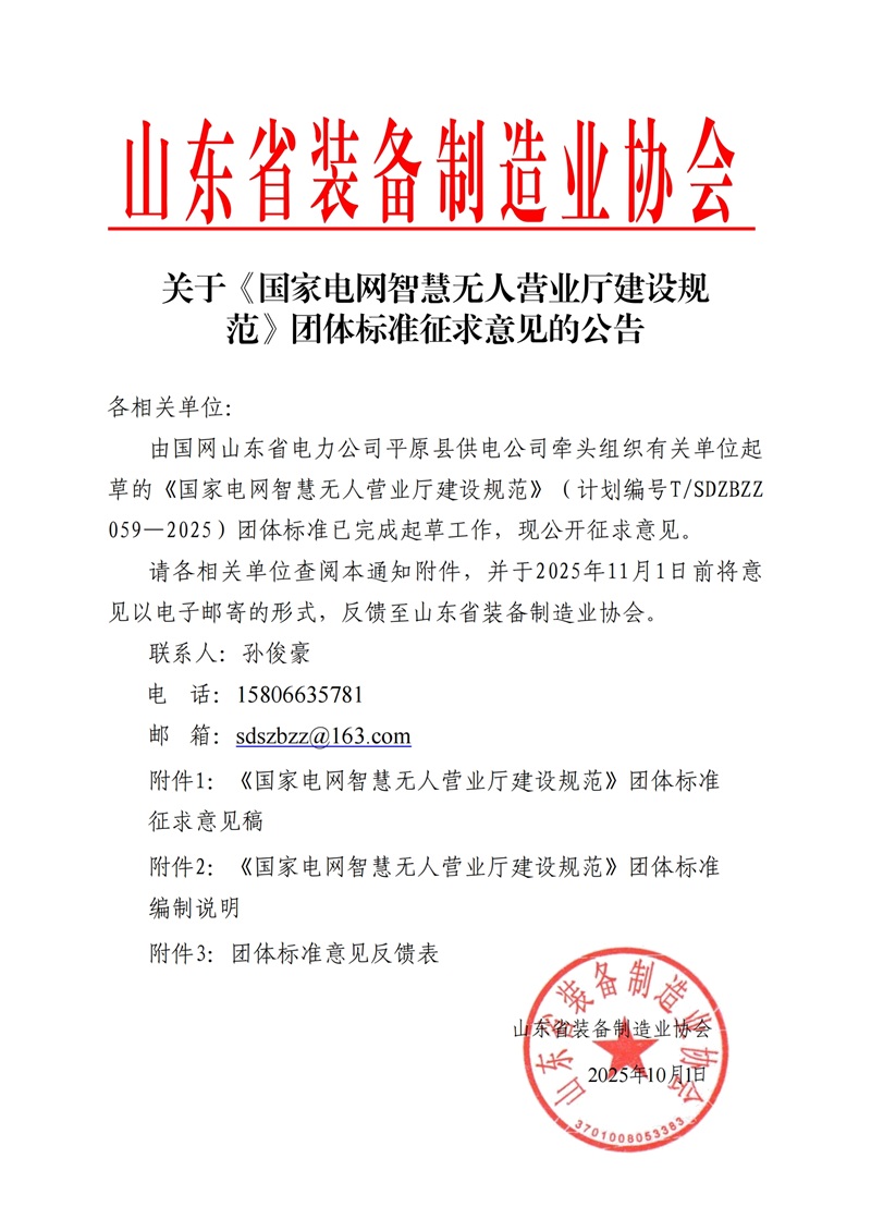 关于《国家电网智慧无人营业厅建设规范》团体标准征求意见的公告