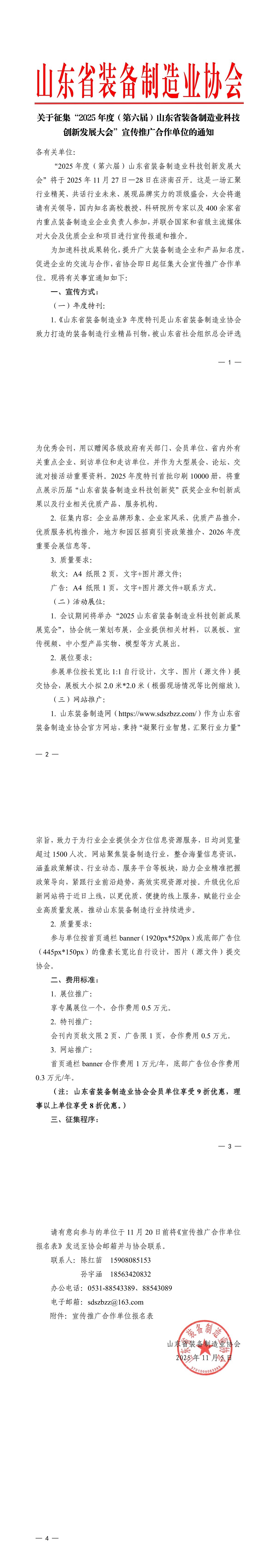 关于征集“2025年度(第六届)山东省装备制造业科技创新发展大会”宣传推广合作单位的通知.pdf