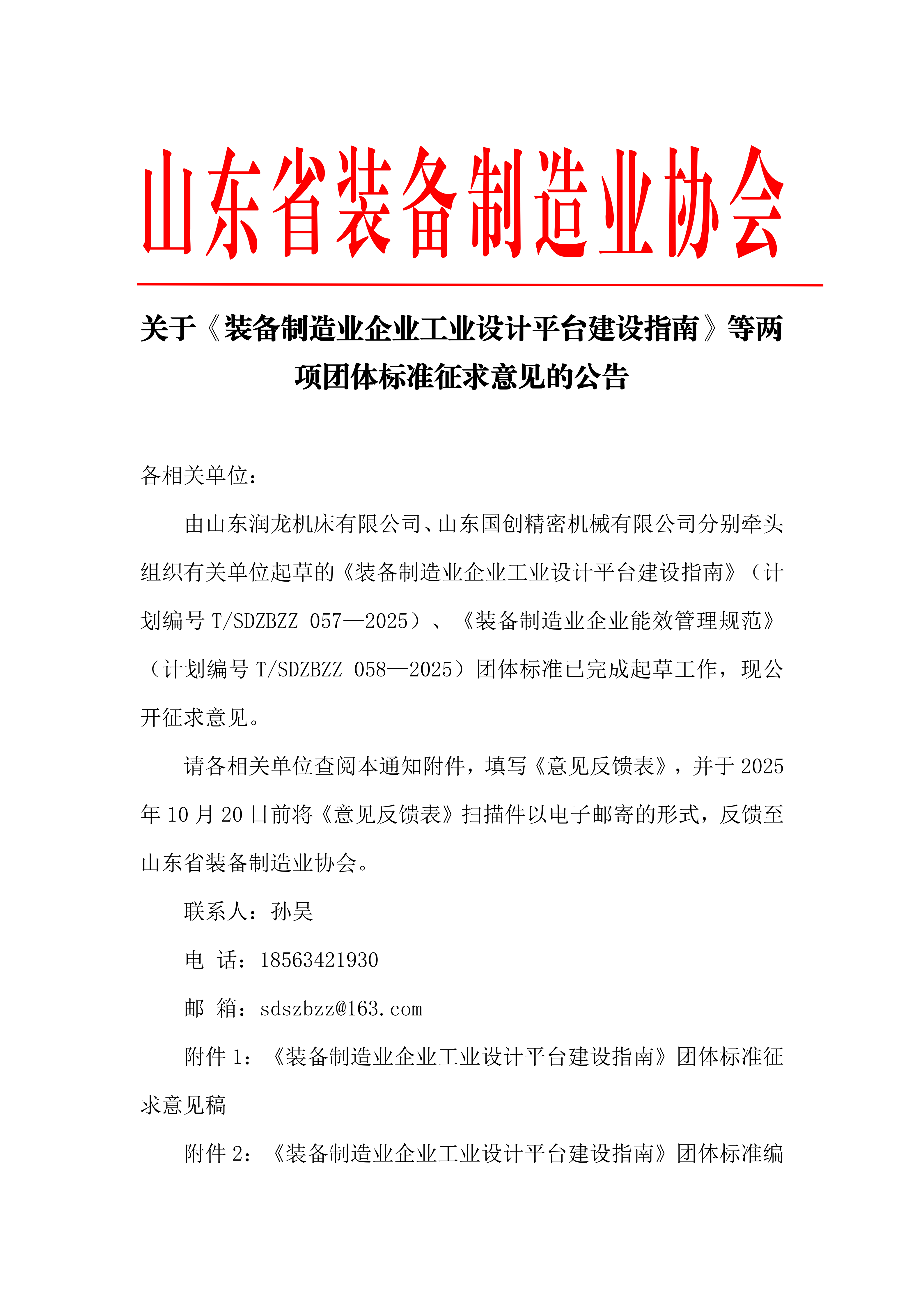 关于《装备制造业企业工业设计平台建设指南》等两项团体标准征求意见的公告